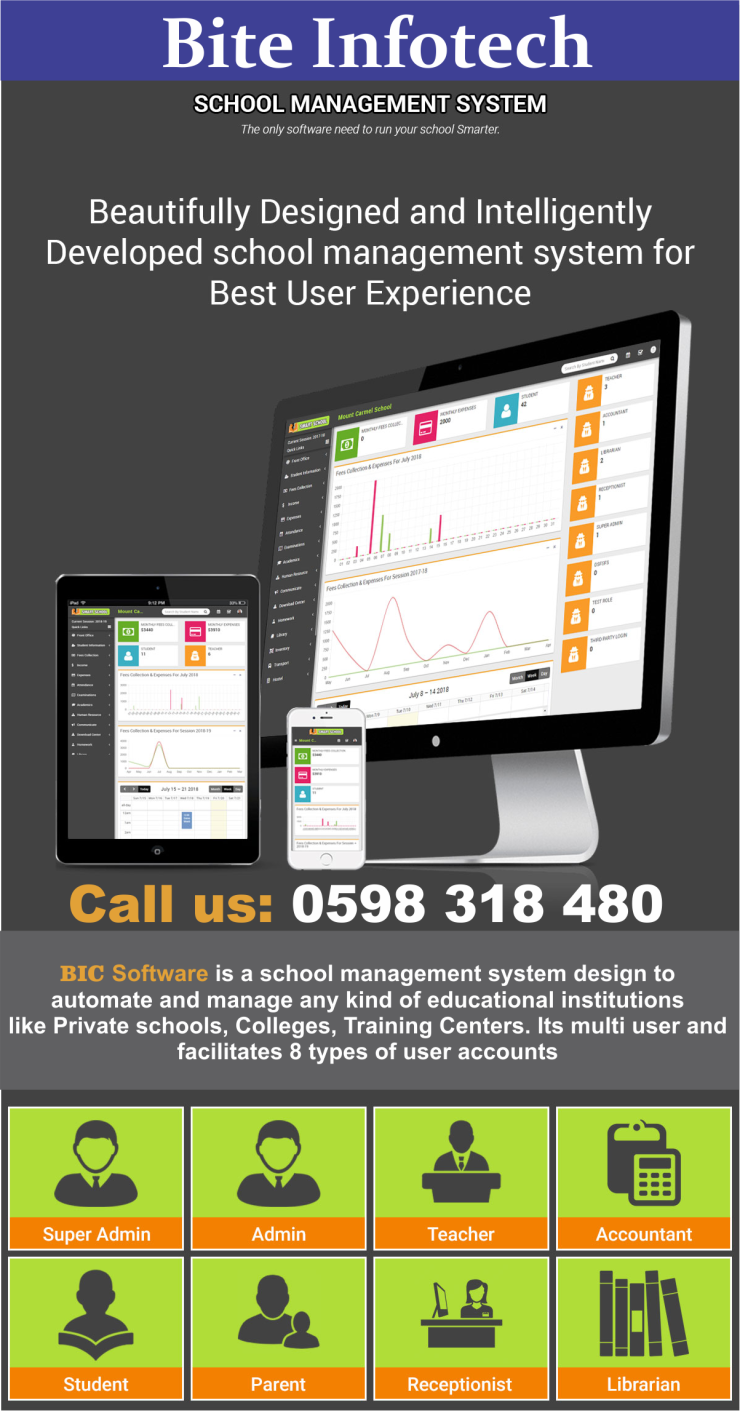 Transform Your School with Our All-in-One School Management System! Streamline operations, improve communication, and boost academic performance with the most user-friendly and powerful school management software on the market. ✅ Secure Student Records, Admissions & Fee Management Models ✅ Parents & School administration communication ✅ HR Models and Staff and Student Attendance ✅ Access for Admin, Staff, Parents & Students ✅ Financial Reports, & More. Trusted by 1,000+ schools worldwide. Buy Now and experience seamless school administration! 📞 Call us at +233 598318480 🌐 Visit https://biteinfotech.com/ Let’s take your school digital—efficient, paperless, and stress-free.